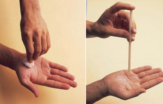 Este método suele utilizarse para averiguar la capacidad de una persona para discriminar entres dos estímulos cutáneos, aplicados simultáneamente como dos puntos diferentes. esta capacidad varía mucho a lo largo de la superficie corporal
